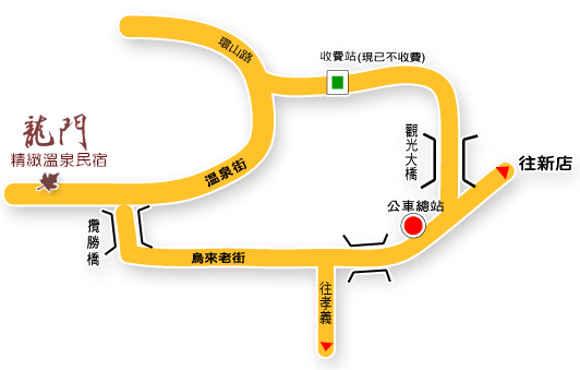 捷運新店線:台北車站→新店捷運站→轉搭新店客運【台北-烏來】線→烏來總站 |